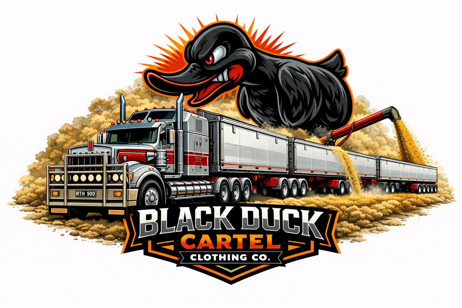 Black Duck Cartel Clothing Co was founded by—yes, you guessed it—a truck driver’s wife and built by fellow truckers who own and run their own business, living life on the highway. The name came from a mix of moments, people, and experiences that shaped our journey, and one day we simply said bugger it, let’s give it a red-hot crack. Alongside the brand, we operate an interstate transport company—proof that trucking isn’t just what we do, it’s who we are. Every truck we’ve owned proudly wears a Black Duck hood ornament, a symbol that’s become part of our identity.